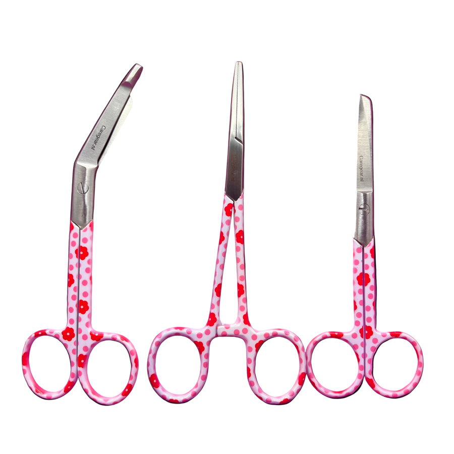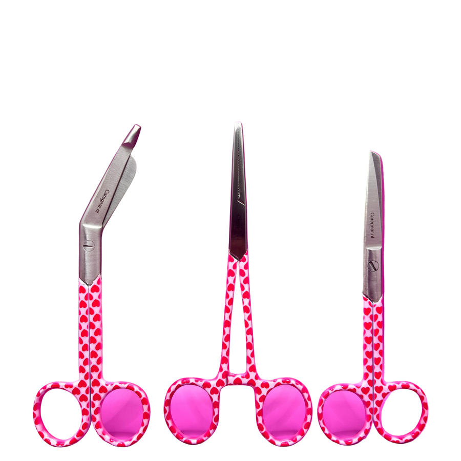 Welkom bij Caregear – dé specialist in **verpleegkundige scharensets** en **medische scharen met hoogwaardige **naamgravering**. Onze sets zijn ideaal voor verpleegkundigen, zorgprofessionals en studenten die hun werkdag willen verrijken met kwalitatieve RVS-instrumenten in unieke designs. Vind jouw favoriete **3-delige scharenset** met vrolijke prints of moderne kleuren.